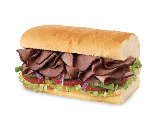 Indulge in the hearty Roast Beef sandwich, packed with tender roast beef, crisp lettuce, tangy pickles, zesty onions, and vibrant peppers. Topped with a bold mustard sauce, this sandwich delivers a satisfying and mouthwatering burst of flavor in every bite.